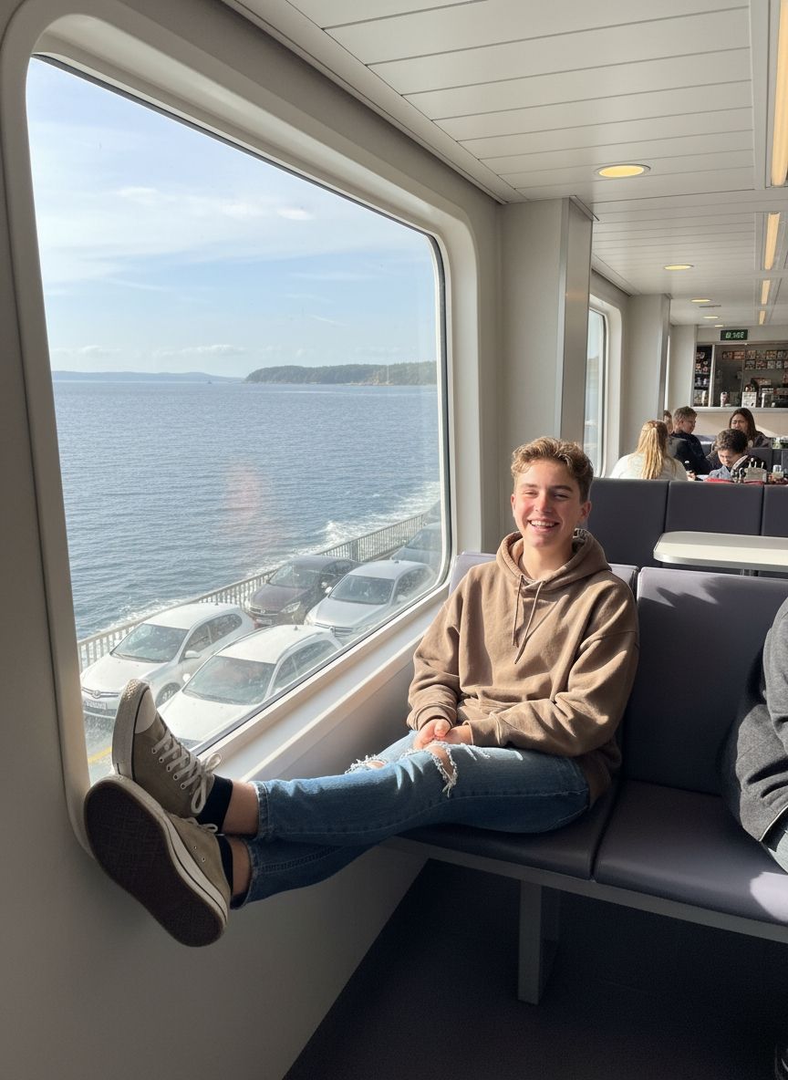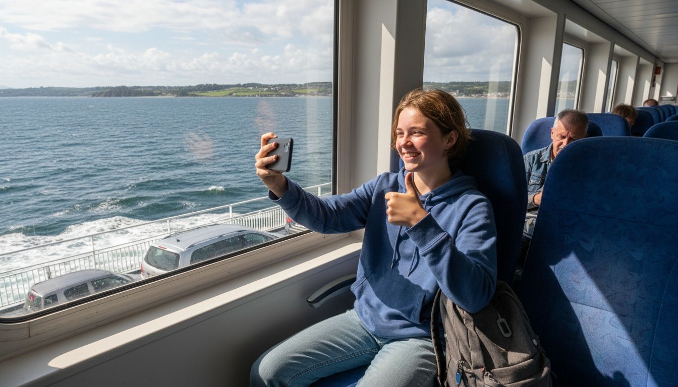 The car is on a ferry.