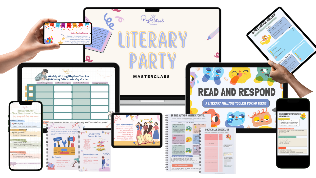 Your teen needs a way to improve their literary essay writing with a COMPLETE  ESSAY WRITING SYSTEM that will equip them with the skills needed to start writing great literary essays, no matter which writing method they are being taught at school!