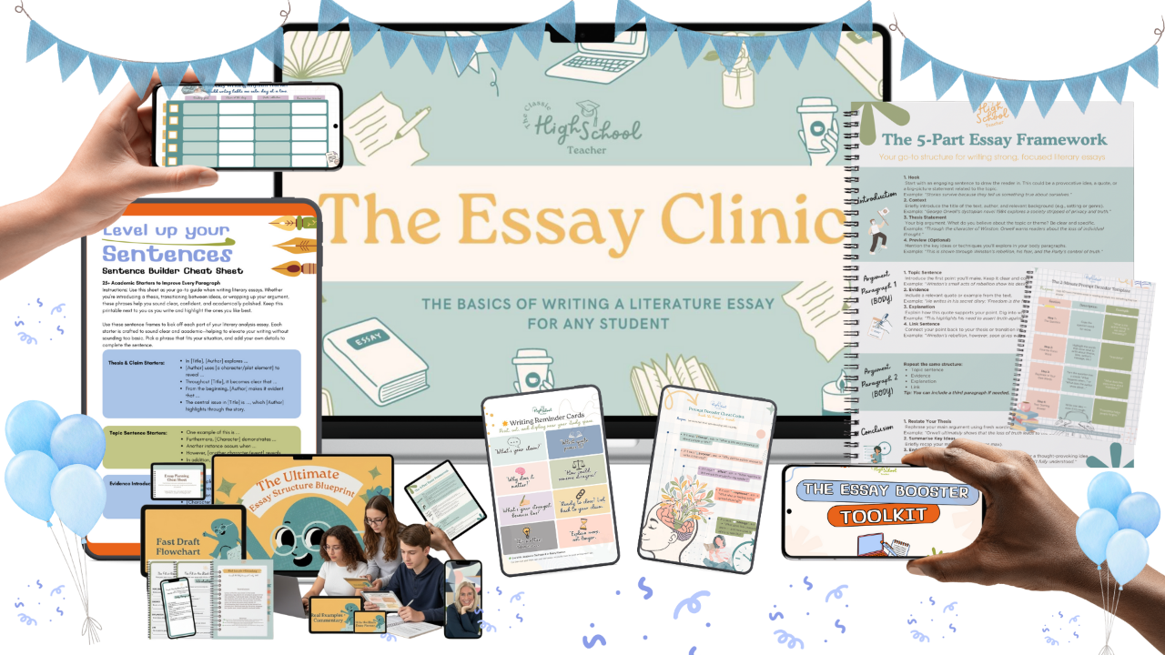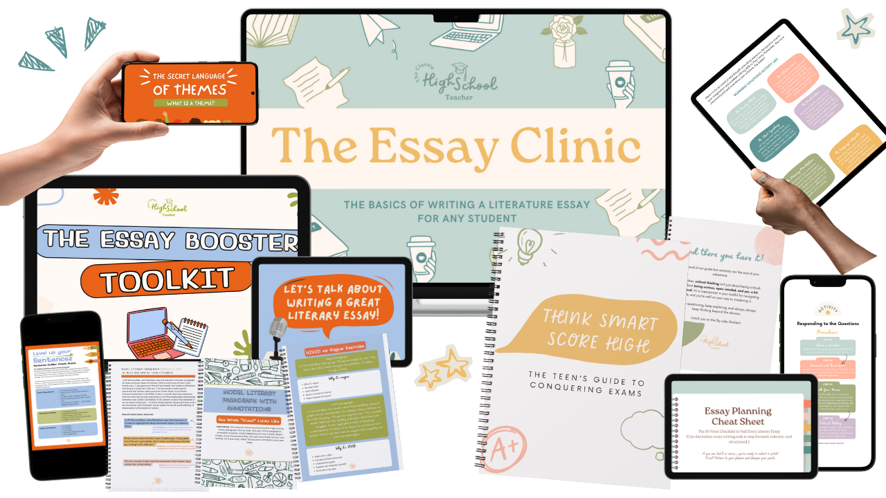 If essays are part of your teenās exams, The Essay Clinic will help them write with confidence, structure, and clarity. TRUSTED BY EDUCATORS GLOBALLY āāāāā For less than the cost of only one tutoring session, let me invite you to join my complete writing program, The Essay Clinic, where your teen can improve their essay writing skills at their own pace, right from home. š Itās designed for busy families who want a flexible, affordable solution that actually worksāwithout the hassle of scheduling traditional tutoring sessions. š Hereās why itās perfect for your teen: āļø Easy to Fit into Any Schedule: Your teen can learn anytime, anywhere, on their own schedule. No need to stress about fitting in one more thing! āļø Proven Results: With personalized feedback and step-by-step guidance, teens see real improvements in both their grades and confidence. āļø Affordable Excellence: For less than the cost of a single tutoring session, you get a full writing course with ongoing support and resources. š° āļø Engaging and Interactive: We use real-world examples, hands-on practice, and personalized guidance that keeps your teen motivated. āļø Designed for Busy Teens: This course is easy to follow and doesnāt overwhelm them with unnecessary work. It focuses on what matters mostābetter essay writing. And did I mention itās only $149?! (Plus enjoy two FREE bonuses - My STAR Study Framework masterclass and my Exam Ready Masterclass) (SUITABLE FOR ALL GLOBAL REGIONS; MIDDLE SCHOOL, HIGH SCHOOL, LOCAL SCHOOL EXAMS, I.B, GCSE, NCEA, & MORE!) I'm going to teach your teen, in this work-at-your-own-pace course what they've been missing in English class so they can truly understand how to write a literary essay confidently. This is the resource they will turn to, time and time again, throughout their high school life. A resource filled with celebration and adventure. Come and join us! ⨠What Your Family Will Get ⨠Understand How The Literary Essay is Written Master the Basics of Essay Writing: Gain a solid foundation in crafting essays, tailored specifically for literary response exams. Understand Thesis Statements Learn what a thesis statement is and how to create a strong, clear central argument for your essays. Grasp the General Structure Discover the essential structure of an essay, making your writing clear and organized. Construct Effective Paragraphs Develop the skills to build coherent and persuasive paragraphs that support your thesis. Use Versatile Lines Get equipped with versatile phrases and lines that you can confidently use in any exam question. Build Writing Confidence Gain the confidence to write essays independently, without relying on AI or other tools. This dynamic, easy-to-follow digital program designed to prepare teens for essay writing success. This could be in any exam or assessment where they are required to respond to texts and write unaided, (so whether they are preparing to sit their local school's entrance test or end of term exam, class assessments, GCSEs, NCEA, the International Baccalaureate, or any other region's local assessment that requires a literature response, this foundational essay course is perfect for your teenager, whether they are in Middle School, Junior High or starting High School). You get lifetime access plus any future program updates! SUMMER SPECIAL - Take advantage before our school rates start! (A $497 Value!) ENROLL NOW Which Teenager Is This For? You feel like you are struggling to start your literary essay because you don't know where to begin and you are finding it hard to interpret and analyze literary texts. You feel overwhelmed by the amount of reading and analysis required and feel lost when it comes to writing introductions and conclusions. You find it difficult in organizing your thoughts and creating a coherent structure and you have trouble in linking evidence from the text to your arguments. Lastly, you struggle to understand how to develop a strong thesis statement and you are feeling insecure about your writing abilities and fearing low grades.